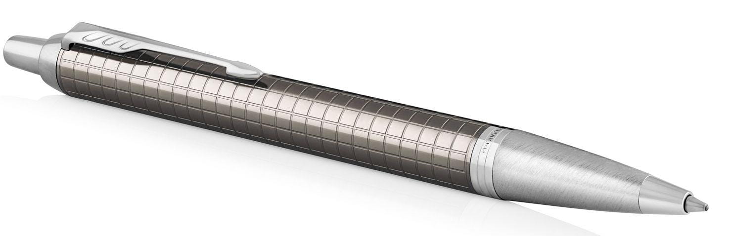 Długopis Parker to solidny partner. Inteligentny, pewny i profesjonalny. Linia Parker IM to wykończenia oddające najlepszą tradycję marki. Każdy detal długopisu IM Premium zaprojektowany został tak, by zapewnić niezawodność pisania. Mosiężny korpus jest chromowany i cyzelowany. Wyczuwalny pod palcami grawerowany wzór jest ponadczasowy, subtelnie podkreśla wykończenia. Pierścienie oraz część przednia chromowane i polerowane.