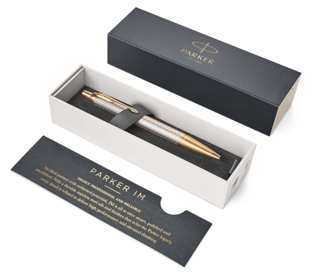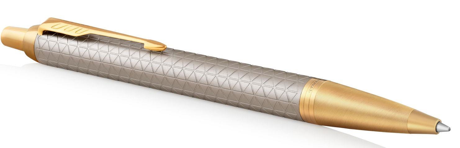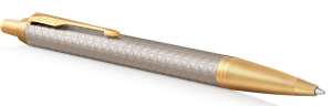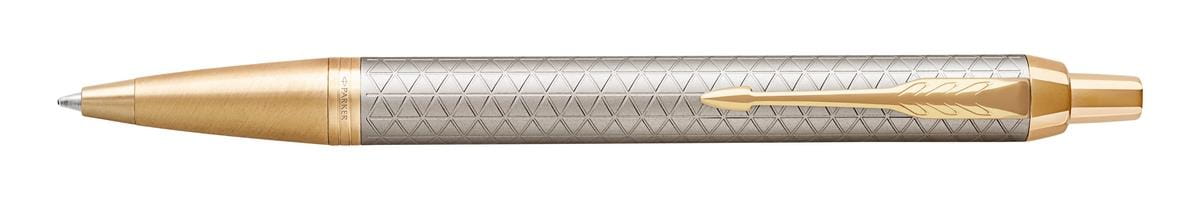Długopis Parker to solidny partner. Inteligentny, pewny i profesjonalny. Linia Parker IM to wykończenia oddające najlepszą tradycję marki. Każdy detal długopisu IM Premium zaprojektowany został tak, by zapewnić niezawodność pisania. Aluminiowy korpus jest piaskowany, anodowany na matowy, srebrny kolor i dodatkowo grawerowany laserem. Grawerowany wzór jest ponadczasowy, subtelnie podkreśla wykończenia. Pierścienie wykończone złotem.