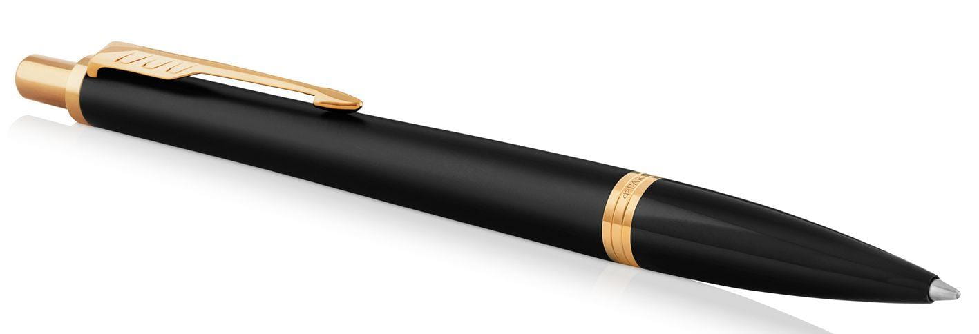 Nowe spojrzenie na klasyczne produkty z linii Urban. Transformacje to produkt w odświeżonej, nowej odsłonie. Efektowny Parker Urban przenosi tradycję marki Parker na nowe terytoria. Najbardziej dynamiczny design wśród produktów marki Parker. Dynamiczny design i szeroki zakres wykończeń stworzonych dopełni Twój indywidualny styl. Jest to linia produktów przygotowanych specjalnie z myślą o tych osobach, które pragną wyraźnie zaznaczyć swój indywidualny styl. Parker Urban nadaje każdemu słowu szczególnego znaczenia. Gustowny długopis Parker Urban łączy prostotę matowego czarnego koloru z wyrafinowanym kształtem oraz złotymi wykończeniami. Matowo czarny lakier o proszkowej powierzchni i polerowane wykończenia pierścieni podkreślają wysoką jakość produktu. Pierścienie wykonane są ze stali nierdzewnej, wykończenia chromowane. Korpus wykonany z mosiądzu lakierowany czarnym lakierem. Sekcja przednia wykonana z czarnego tworzywa sztucznego i polerowana.