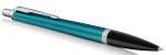 Nowe spojrzenie na klasyczne produkty z linii Urban. Transformacje to produkt w odświeżonej, nowej odsłonie. Efektowny Parker Urban przenosi tradycję marki Parker na nowe terytoria. Najbardziej dynamiczny design wśród produktów marki Parker. Dynamiczny design i szeroki zakres wykończeń stworzonych dopełni Twój indywidualny styl. Jest to linia produktów przygotowanych specjalnie z myślą o tych osobach, które pragną wyraźnie zaznaczyć swój indywidualny styl. Parker Urban nadaje każdemu słowu szczególnego znaczenia. Gustowny długopis Parker Urban łączy głębię koloru z wyrafinowanym kształtem oraz chromowanymi wykończeniami. Polerowane wykończenia pierścieni podkreślają wysoką jakość produkt. Pierścienie wykonane są ze stali nierdzewnej, wykończenia chromowane. Pokryte błyszczącym, jasnoniebieskim lakierem i spiralnie szlifowanie w poprzek. Sekcja przednia wykonana z czarnego tworzywa sztucznego i polerowana.
