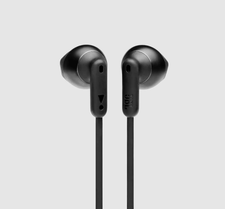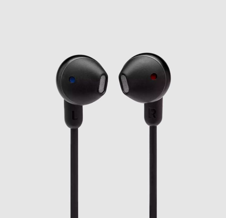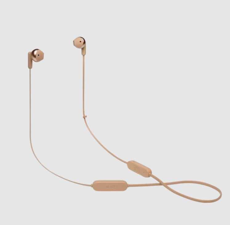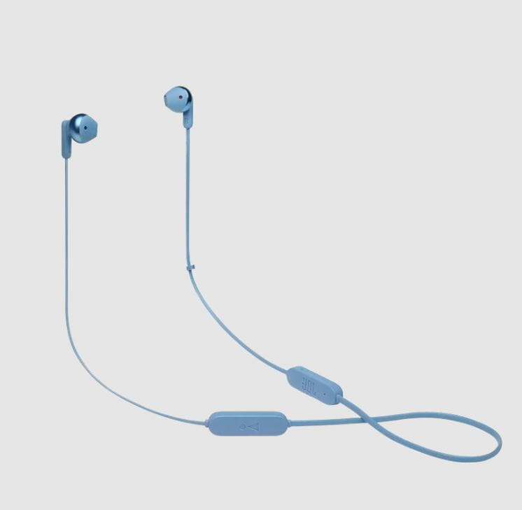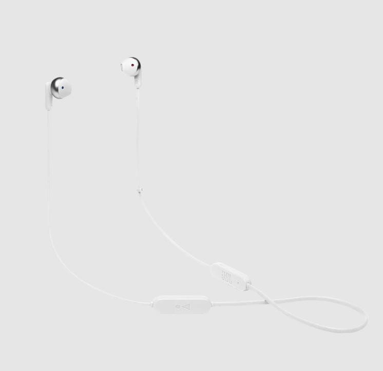 Bezprzewodowe słuchawki douszne, przetworniki 12,5mm, do 16 godzin odtwarzania, Bluetooth 5.0. Wsparcie asystenta głosowego. Płaski, zapobiegający plątaniu przewód. Szybkie ładowanie (10min. = 1h). Multi-point connection. Oryginalna jakość dźwięku JBL z technologią Pure Bass sound. Uniwersalny pilot z mikrofonem. USB typu C do ładowania. Dostępne kolory: czarny, biały, niebieski, złoty.