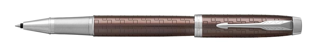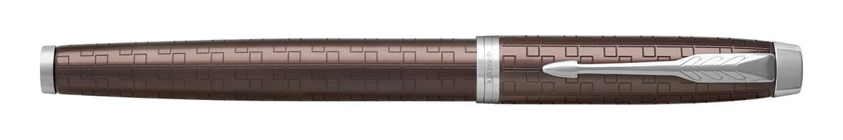 To pióro kulkowe to solidny partner. Inteligentny, pewny i profesjonalny. Linia Parker to wykończenia oddające najlepszą tradycję marki. Każdy detal pióra kulkowego IM Premium zaprojektowany został tak, by zapewnić niezawodność pisania. Aluminiowy korpus jest polerowany, anodowany na brązowo i dodatkowo grawerowany laserem. Grawerowany wzór jest ponadczasowy, subtelnie podkreśla wykończenia. Chromowane pierścienie.