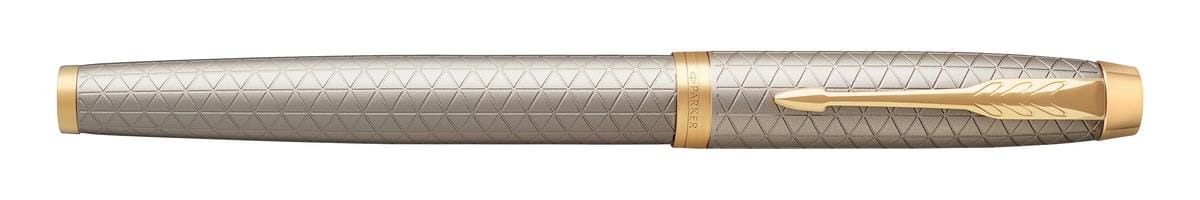 To pióro kulkowe to solidny partner. Inteligentny, pewny i profesjonalny. Linia Parker IM to wykończenia oddające najlepszą tradycję marki. Każdy detal pióra kulkowego IM Premium zaprojektowany został tak, by zapewnić niezawodność pisania Aluminiowy korpus jest piaskowany, anodowany na matowy, srebrny kolor i dodatkowo grawerowany laserem. Grawerowany wzór jest ponadczasowy, subtelnie podkreśla wykończenia. Pierścienie wykończone złotem.