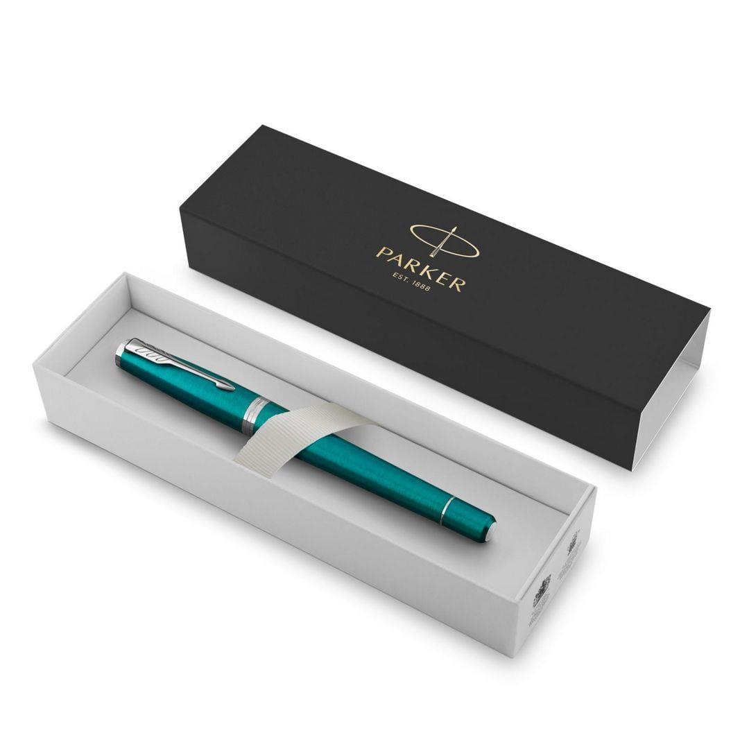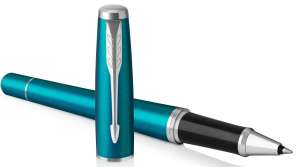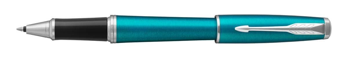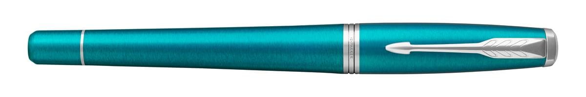 Gustowne pióro kulkowe Parker Urban łączy energię koloru z wyrafinowanym kształtem oraz chromowanymi wykończeniami. Polerowane wykończenia pierścieni podkreślają wysoką jakość produktu. Pierścienie wykonane są ze stali nierdzewnej, wykończenia chromowane. Pokryte błyszczącym, jasnoniebieskim lakierem i spiralnie szlifowanie w poprzek. Sekcja przednia wykonana z czarnego tworzywa sztucznego i polerowana.