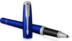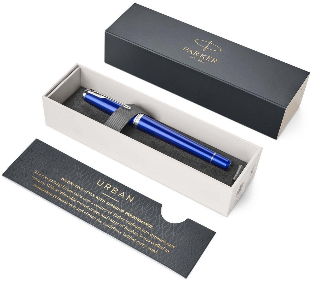 Gustowne pióro kulkowe Parker Urban łączy głębię szafirowego koloru z wyrafinowanym kształtem oraz chromowanymi wykończeniami. Polerowane wykończenia pierścieni podkreślają wysoką jakość produktu Pierścienie wykonane są ze stali nierdzewnej, wykończenia chromowane. Korpus i nasadka wykonane są z mosiądzu, lakierowane. Sekcja przednia wykonana z czarnego tworzywa sztucznego i polerowana.