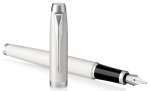 Nowe spojrzenie na klasyczne produkty z linii IM. IM transformacje to produkt w odświeżonej, nowej odsłonie. Odpowiedni dla osób aspirujących do bycia specjalistami w swoich dziedzinach i potrzebujący wywierać świetne pierwsze wrażenie. Pióro wieczne Parker IM dla tych, którzy oczekują niebanalnych rozwiązań. Każdy detal linii zaprojektowany został tak, by zapewnić niezawodność pisania. Na mosiężnej bazie położono kilkanaście warstw białego mlecznego lakieru. Pierścienie chromowane i polerowane. Część przednia wykonana z połyskującego, czarnego tworzywa sztucznego. Pióro wieczne wyposażone jest w stalówkę z wysokiej jakości stali nierdzewnej.