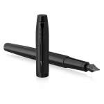 Pióro wieczne IM ACHROMATIC to nowy projekt Parker dedykowany dla młodych profesjonalistów. Modny, matowy lakier odzwierciedla nowe trendy w modzie. Korpus, skuwka i część przednia pokryto wieloma warstwami wyjątkowego, czarnego, matowego lakieru. Stalówkę wykonano z doskonałej jakości stali szlachetnej i pokryto czarną powłoką PVD. PVD to specjalna technika ozdabiania metali przyczyniająca się do odporności na zużycie oraz zabezpieczająca przed korozją. Klip (w charakterystycznym kształcie strzały) i pierścienie również pokryte są specjalną powłoką PVD. Całość idealnie uzupełnia się kolorystycznie. Unikalny design, monochromatyczne wykończenia i kunszt marki Parker tworzą produkt idealny dla mężczyzn i kobiet zainteresowanych najnowszymi trendami i jakością.