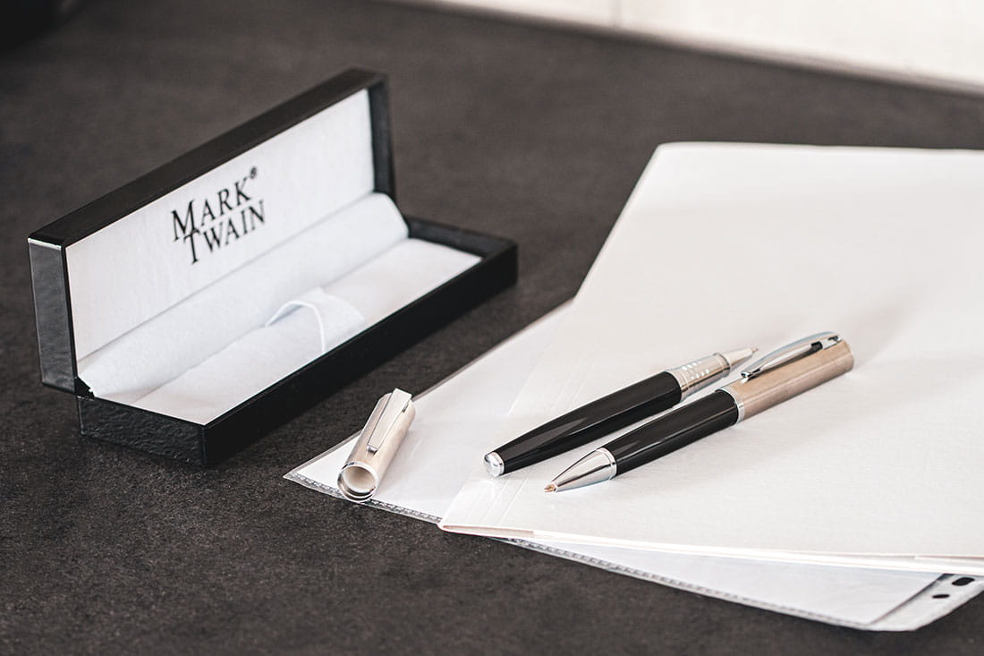 Wysokiej jakości zestaw piśmienny składający się z długopisu i pióra kulkowego w komplecie z akrylowym etui.